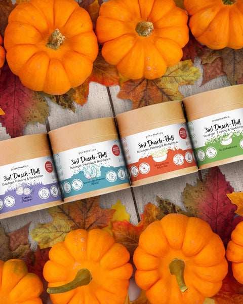 Unsere Herbst Limited Edition 3in1 Dusch-Fluffs sind genau das, was du brauchst, um die einzigartige Magie des Herbstes in dein Badezimmer zu holen. Mit zauberhaften Düften und einer intensiv pflegenden, luftigen Textur verwandeln sie deine Duschroutine in einen echten Verwöhnmoment. Sie sind ein echtes Multitalent: Reinigung, Peeling und Pflege - alles in einem Fluff! Perfekt für die Pflege der Haut zum Jahreszeitenwechsel.