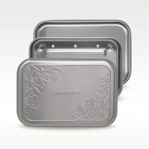 Seifenbox mit Abtropfeinsatz 'Matt-Silber Floral'