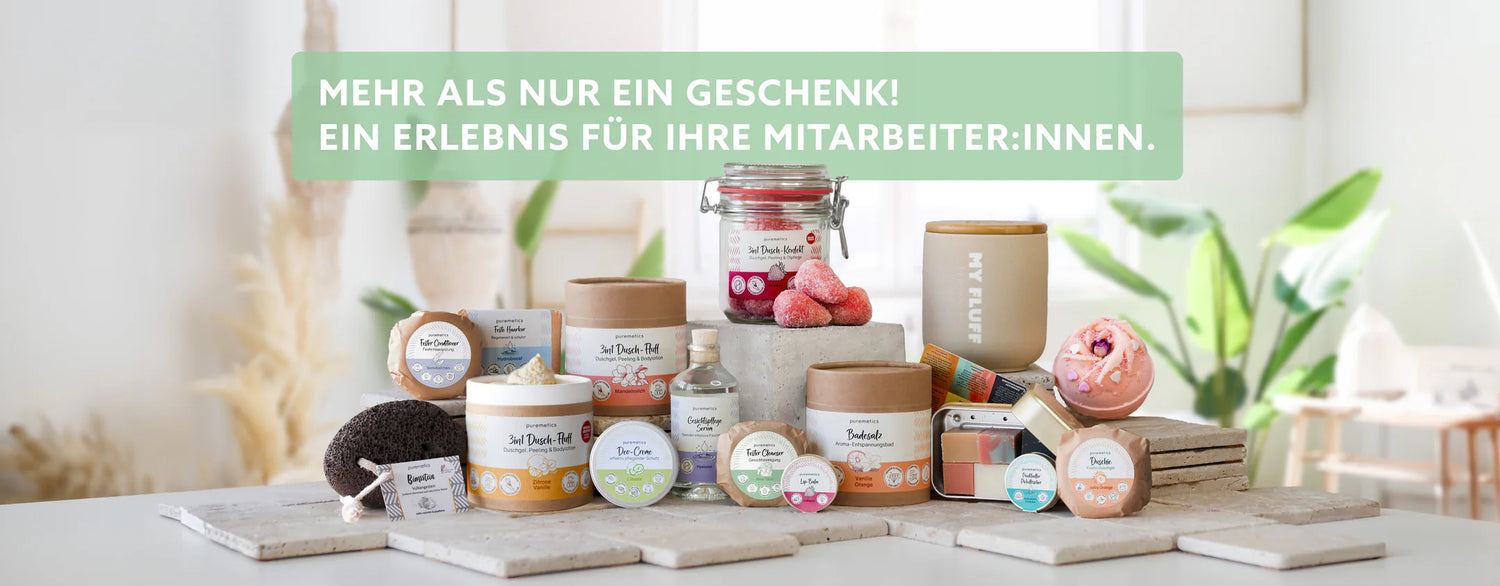 Stärken Sie Ihr Employer Branding mit nachhaltigen, hochwertigen Pflegeprodukten im Private Label Design – statt den üblichen Kugelschreibern, Tassen oder Schokoladen.